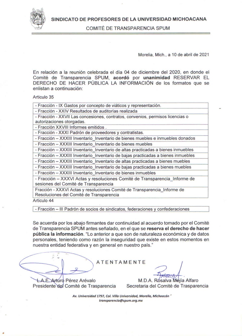 Artículo 35 Fracción XIII Unidad de Transparencia